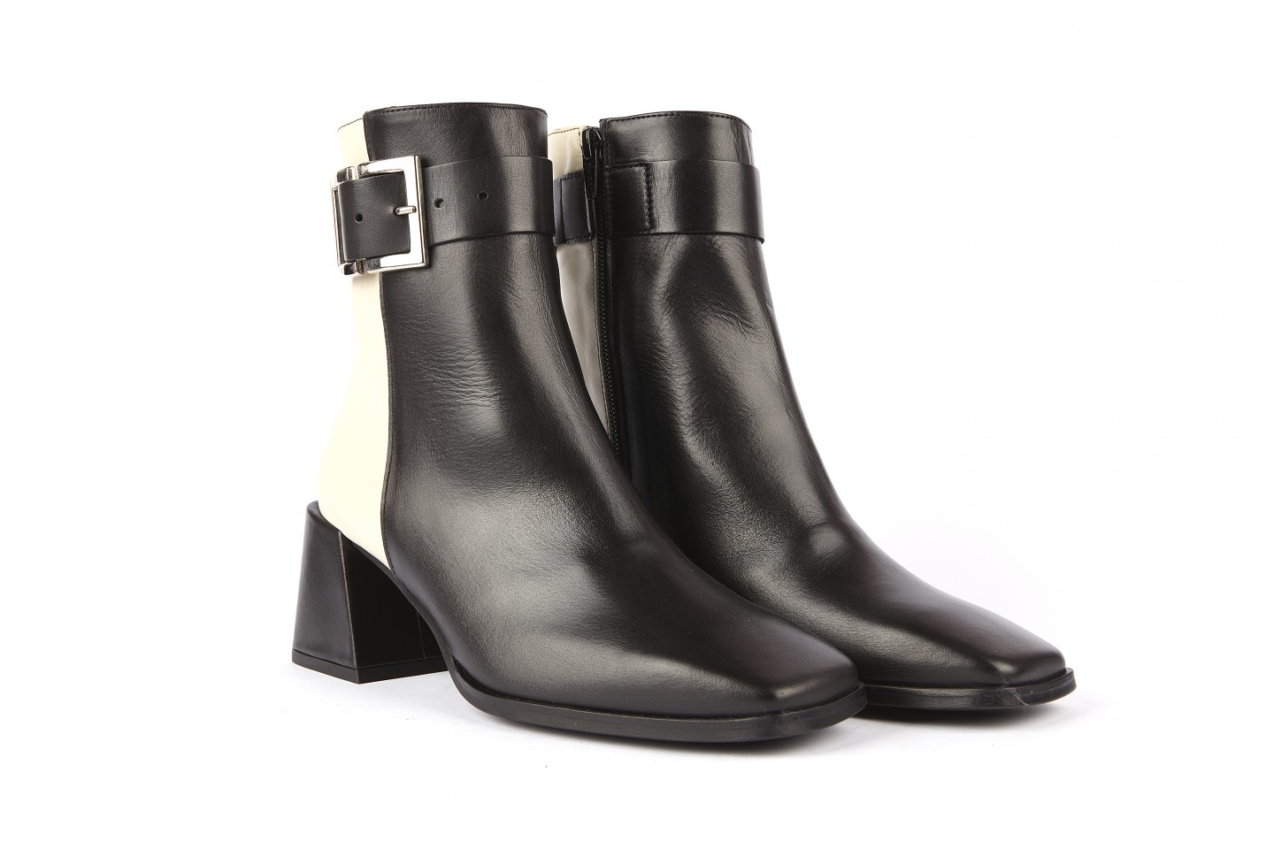 WONDERS botin fabricado en piel en color crema y negro, cierre de cremallera lateral