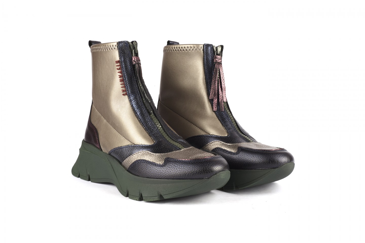HISPANITAS botin deportivo en piel metalizada con cierre cremallera