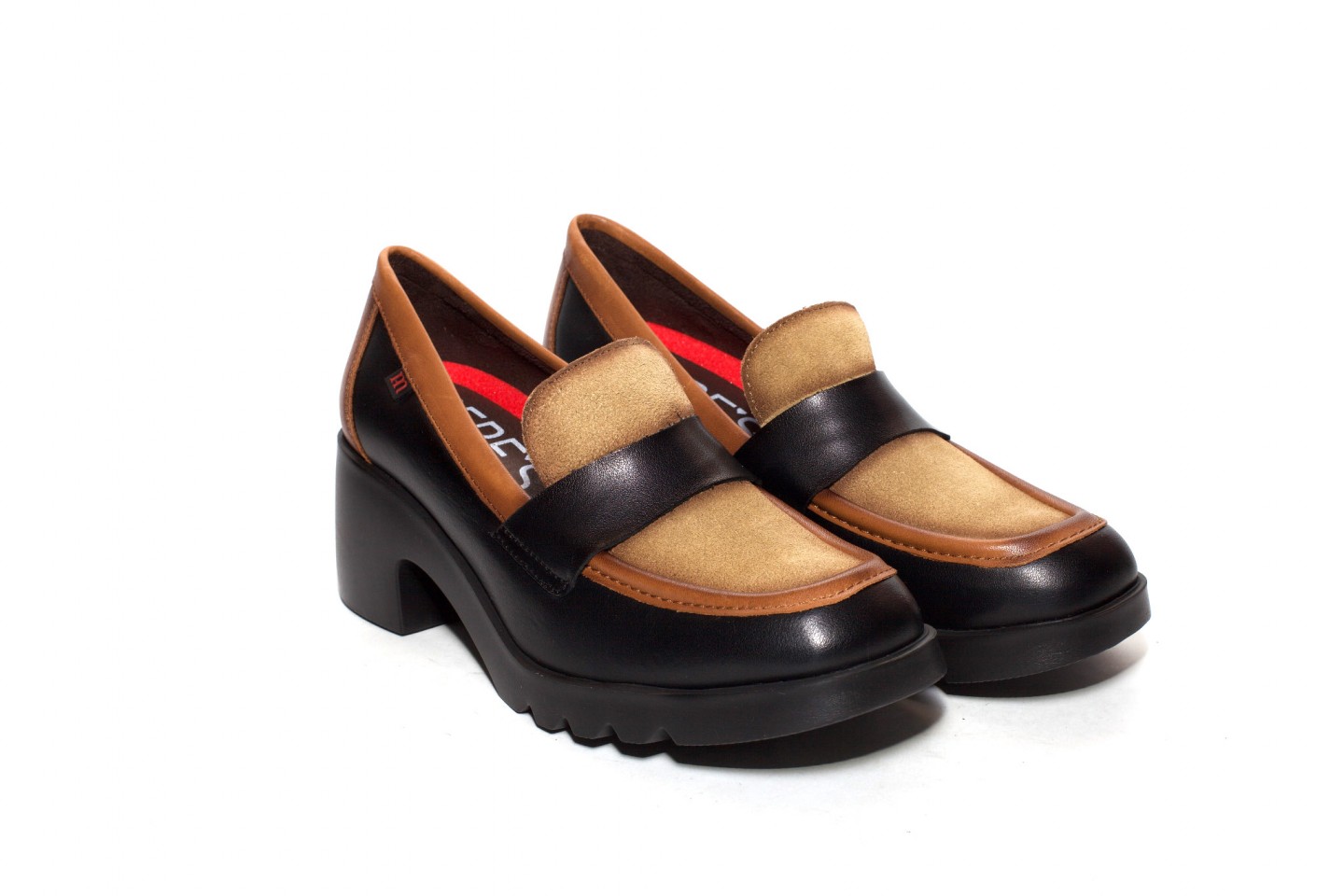 PEPE MENARGUES mocasin de tacòn en piel y nobuck, beig refuerzo talòn a constraste
