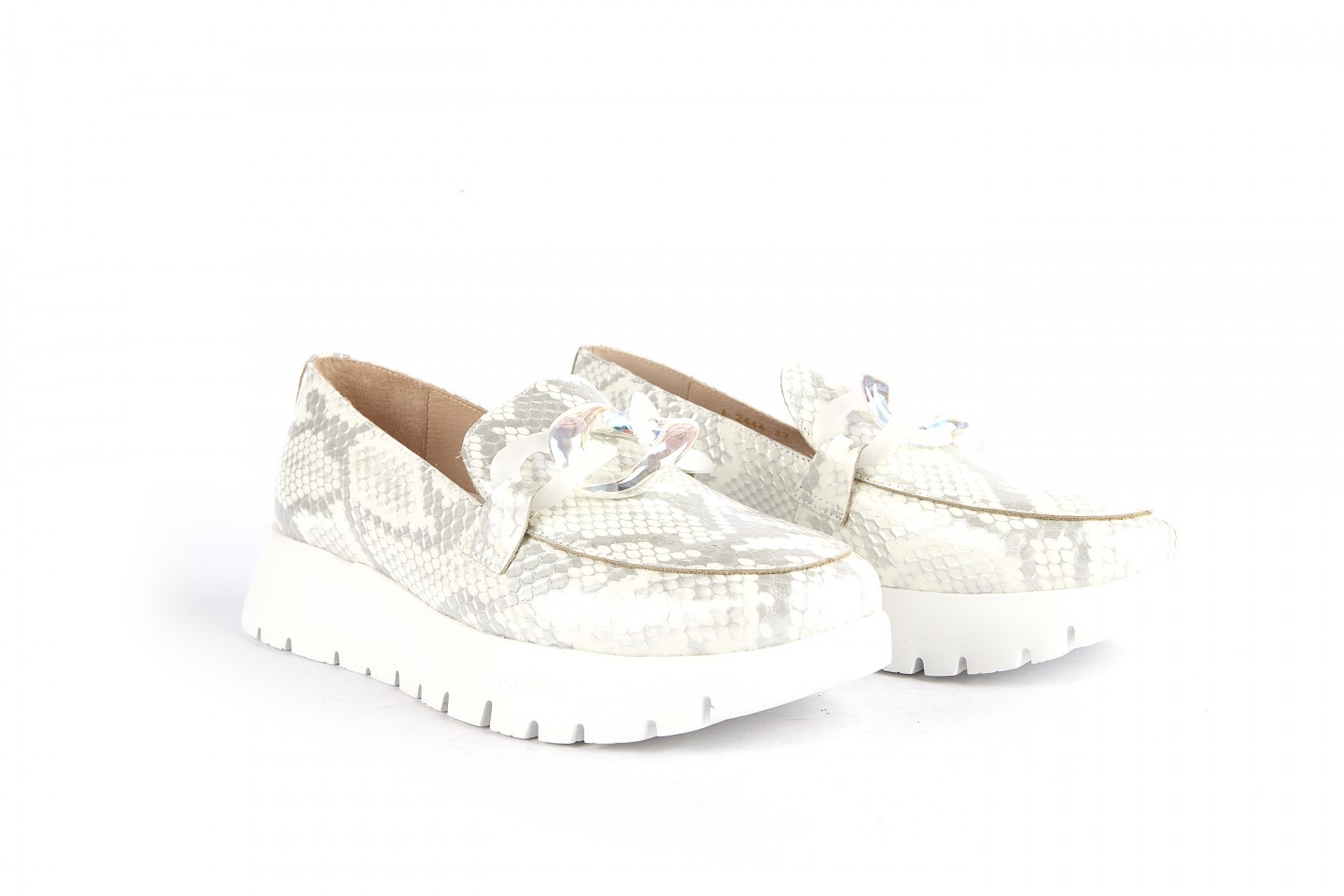 WONDERS mocasin en piel con acabado laminado en blanco-gris, detalle de cadena en pala