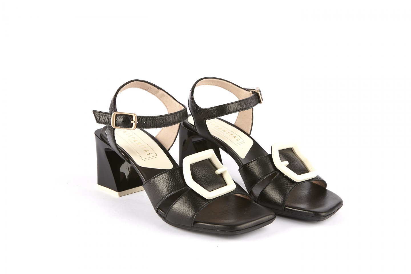 HISPANITAS sandalia elaborada en piel con tacòn de 6ctm, detalle de adorno en enpeine,