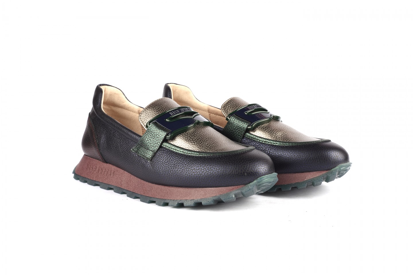 HISPANITAS mocasin sport con suela ancha elborado con piel,detalle de antifaz