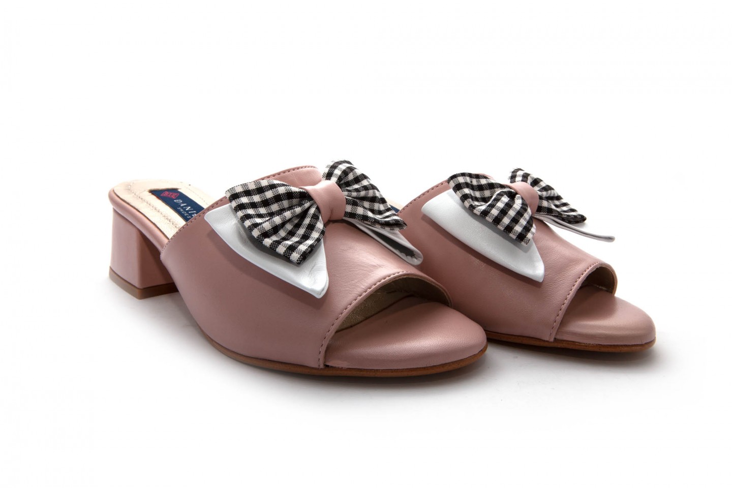 DANIELA zapato tipo mule,tacon medio en piel con detallede doble lazo en pala altura tacon 5cm