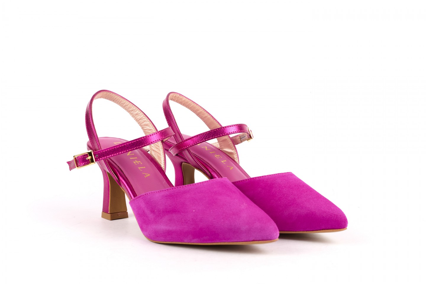 DANIELA salòn destalonado fabricado en ante y piel, tacòn forrado al tono