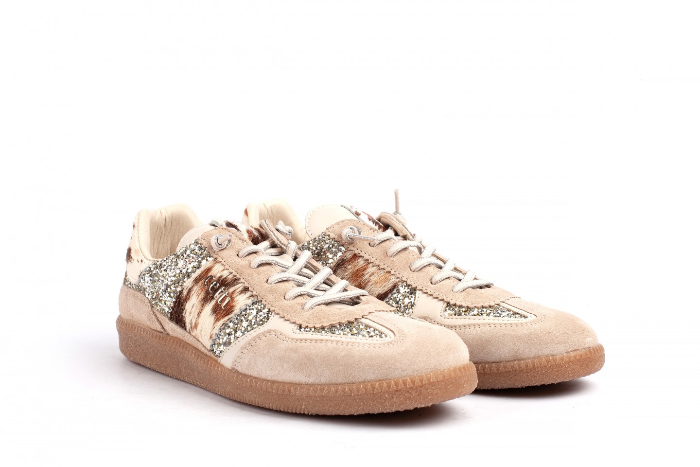 CETTI sneakers elaborada en combinaciòn en piel y glitter, detalles animal print,