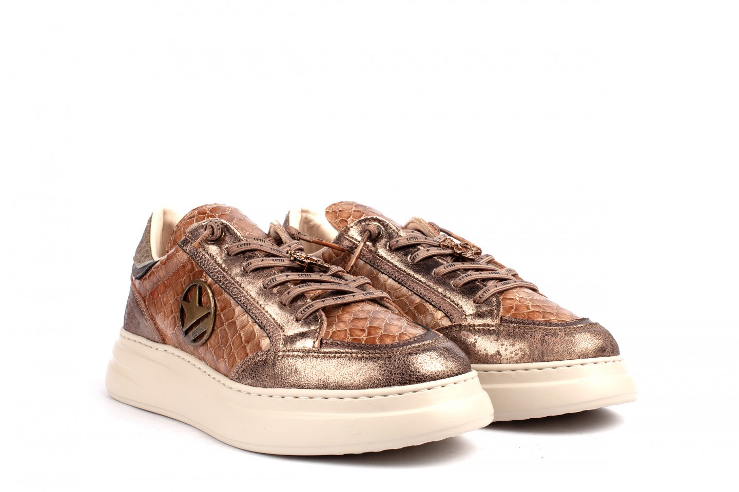CETTI sneakers elaborada en piel, con detalles en print animal y metalizado, con còrdon