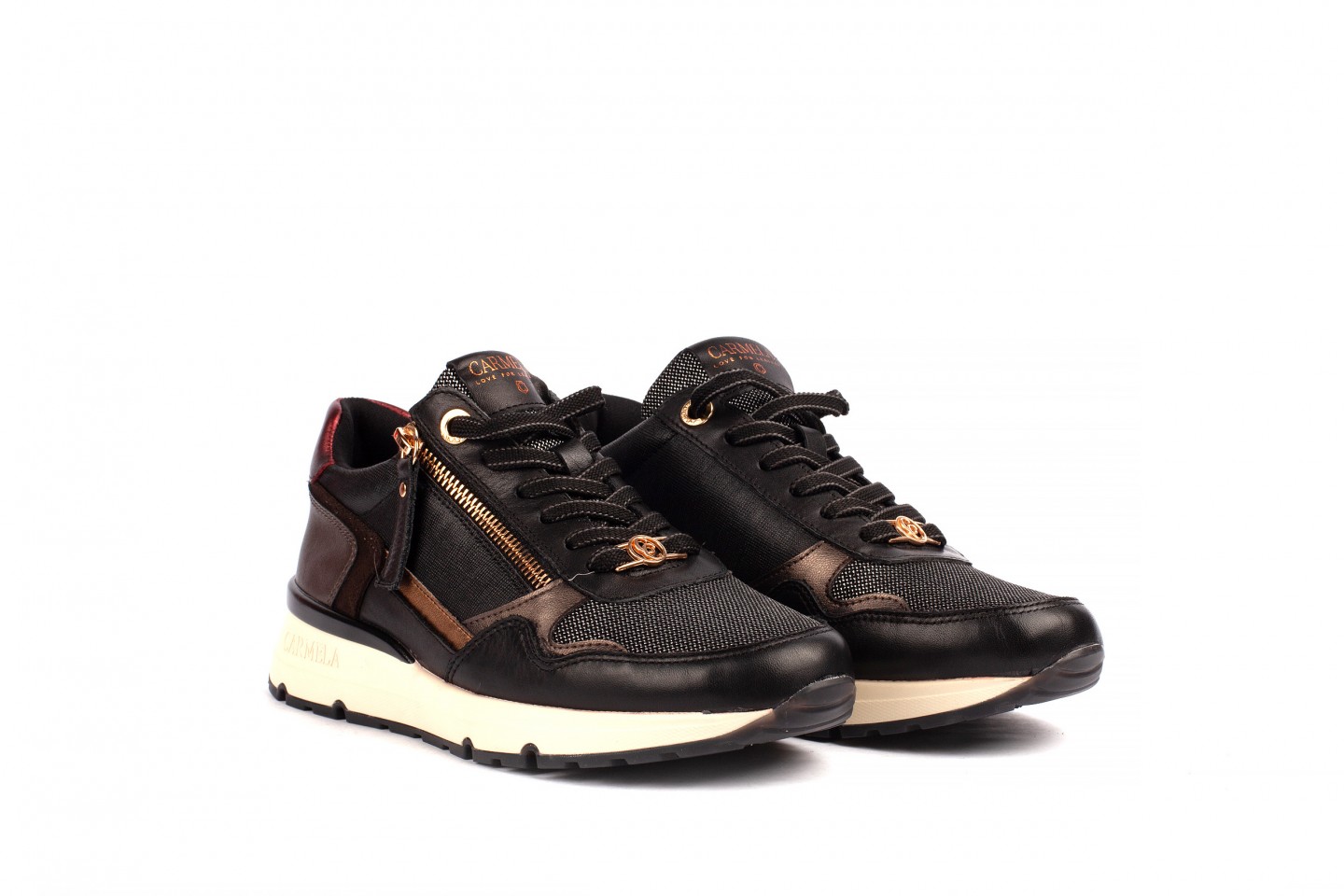 CARMELA sneakers con cordon y cremallera lateral, con varias texturas,