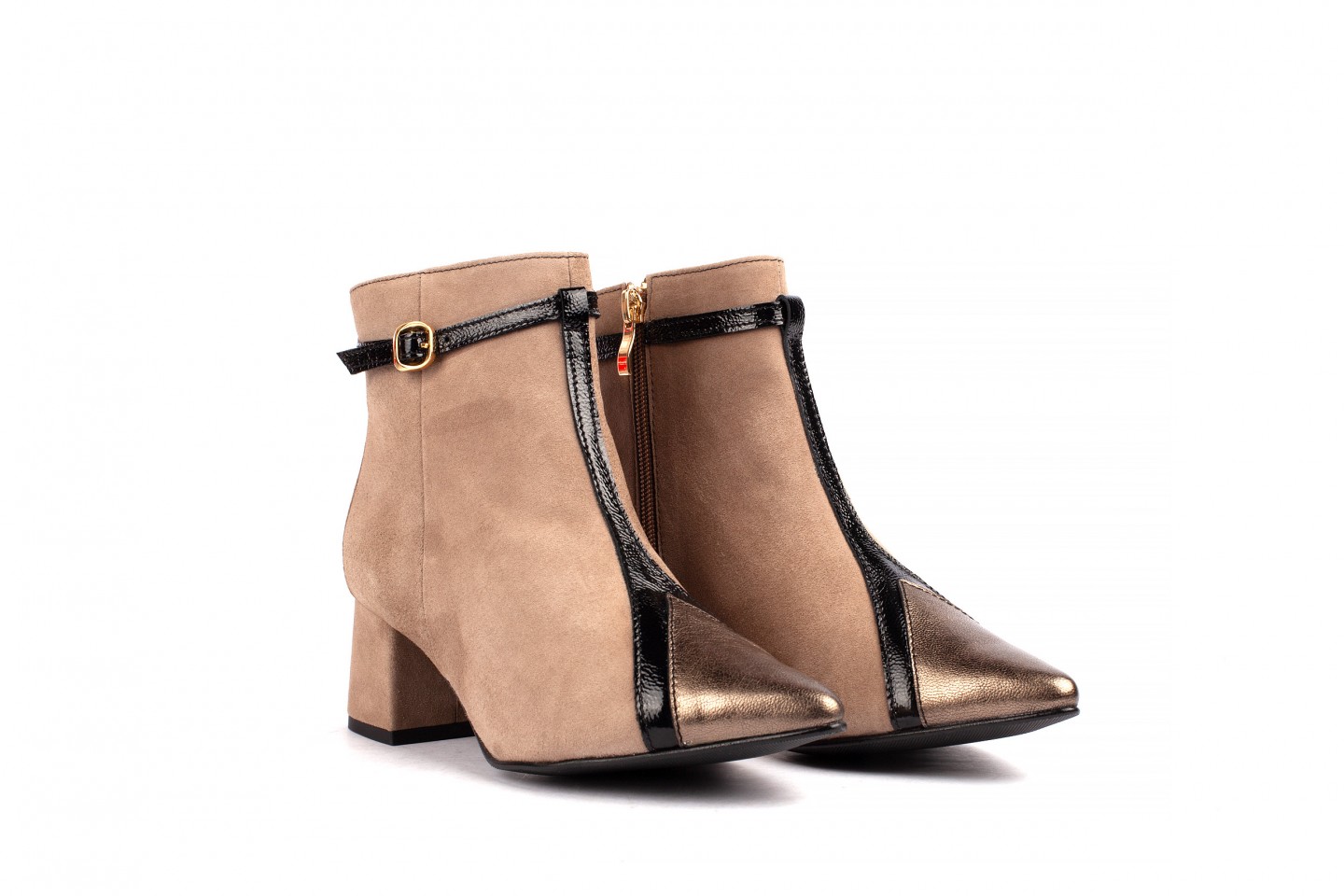 DANIELA botin en ante y piel en puntera, con adorno metal y tira en piel